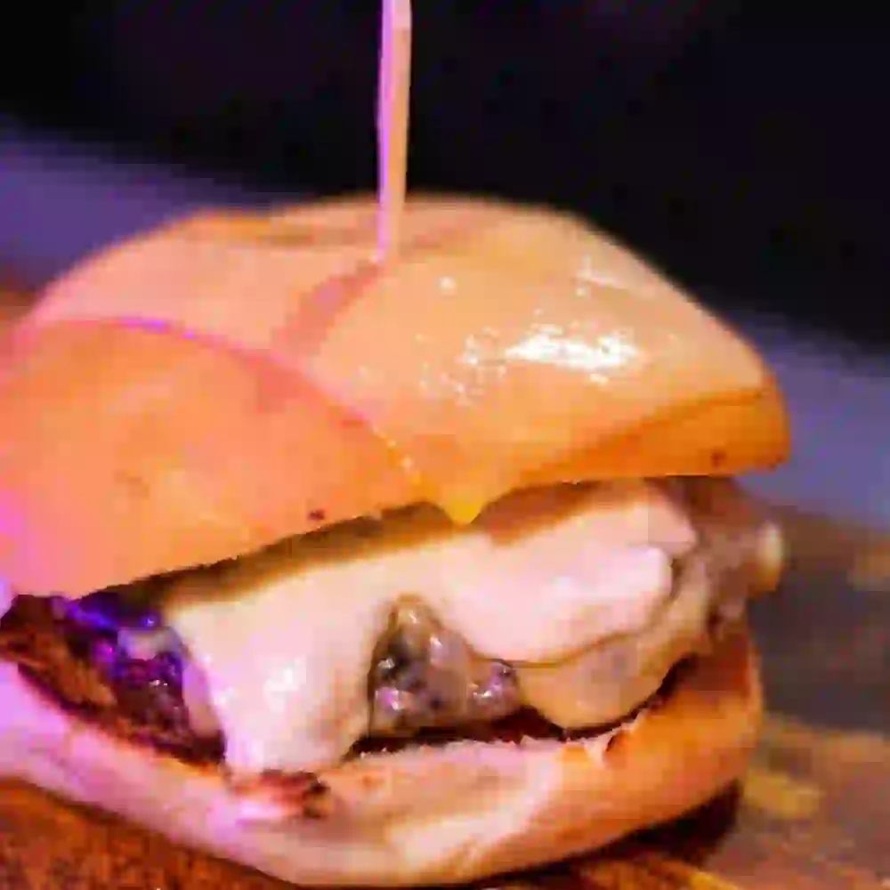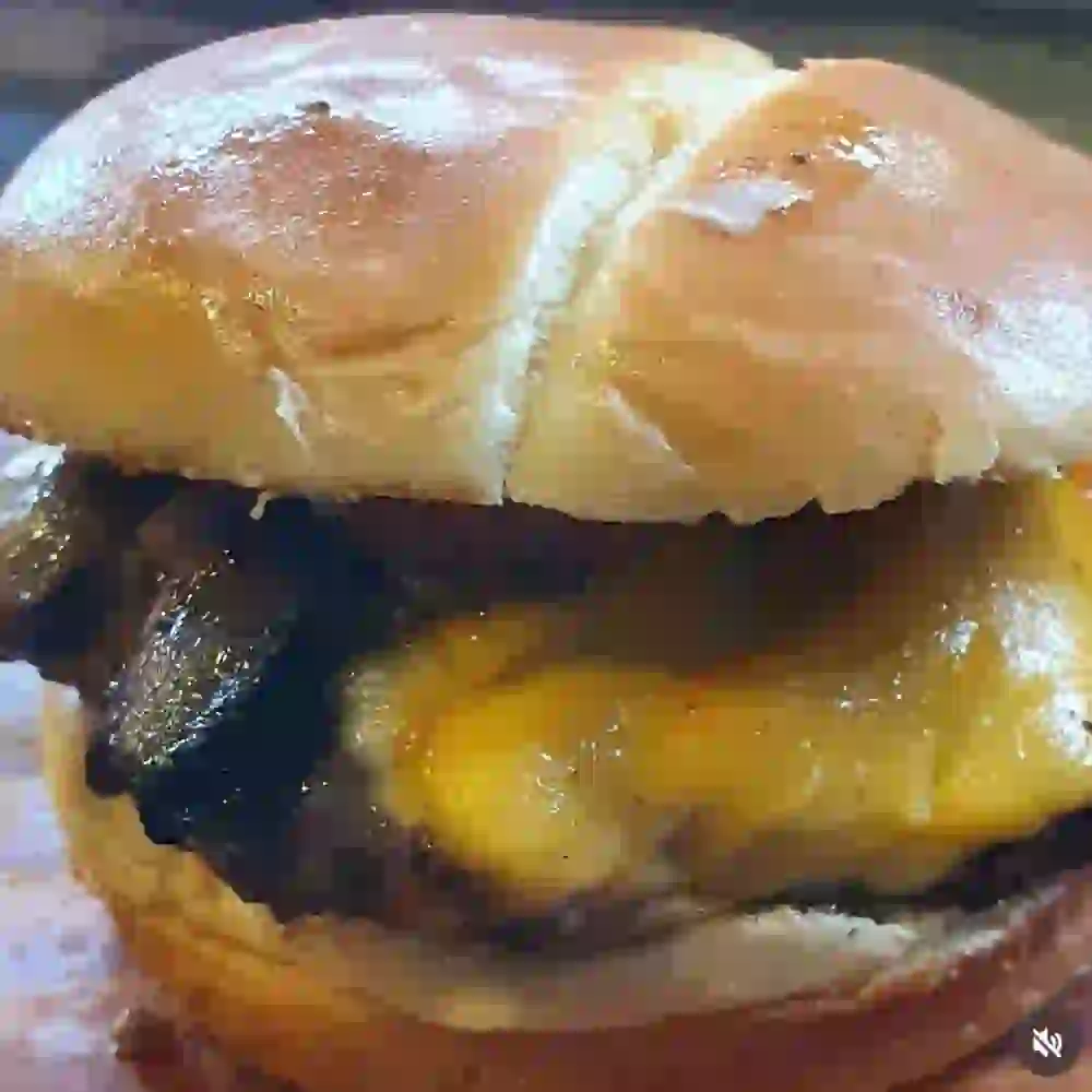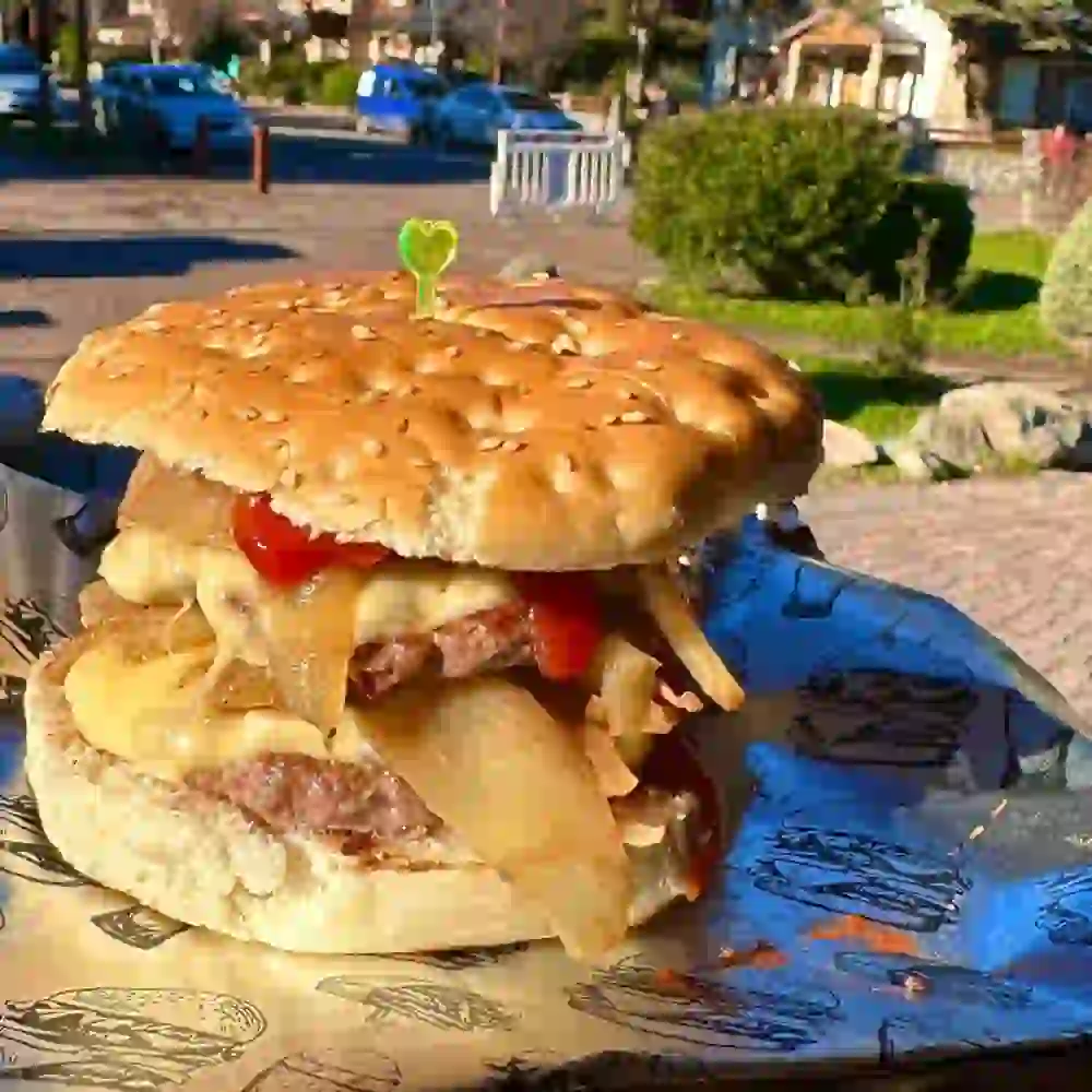 Doble medallon de carne vacuna, doble queso y cebolla salteada.