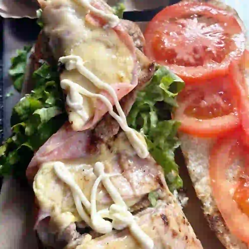 Carne de cerdo con lechuga, tomate, jamón y queso.